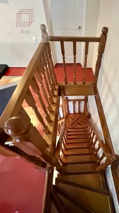 Первый этаж: Прихожая, кухня, столовая, две комнаты и два санузла (просторная ванная комната + туалет)